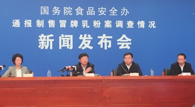 国务院食安办通报制售冒牌乳粉案调查情况新闻发布会。京华时报记者潘珊菊摄