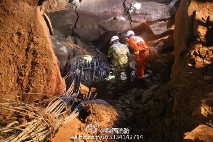 昨天晚7时55分,延安119指挥中心接警称:志丹县旦八镇元峁行政村瓦窑巷村小组发生河槽崖体垮塌事故,造成正在二级公路改造工地施工人员被埋 。(相关新闻:延安志丹发生河槽崖体垮塌事故 7名工人被埋5人死亡)