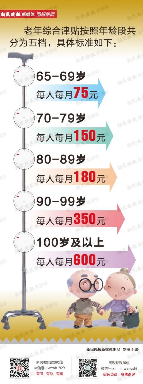 图说:上海老年综合津贴分5档发放。新民晚报新媒体 叶聆 制图