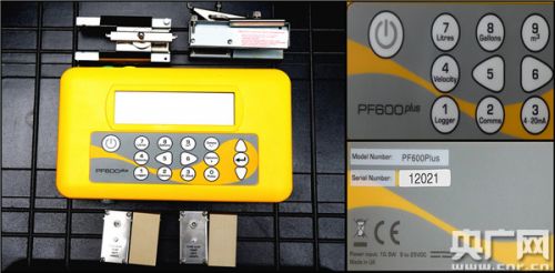 疑似仿冒的英国梅克罗尼PF600plus产品,正面无品牌商标,后盖上写有“MADE IN UK”字样(图片为拼版)