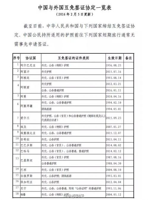 @央视财经:【中国护照含金量再升级!免签落地签国家达53个!】 我国外交部领事司负责人近日表示,持普通护照的中国公民免签或落地签目的地已达53个;与中国缔结各类免签协定的国家达到106个。2016年,将继续沟通协调提升中国护照“含金量”。最新53个免签落地签国家一览表,请戳图↓↓