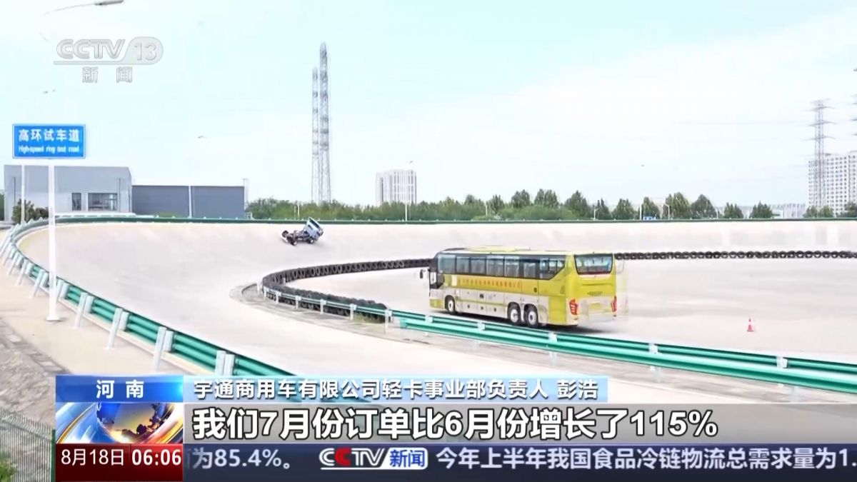 宇通商用车有限公司轻卡事业部负责人 彭浩:新能源冷藏车市场这一块,因为国家新能源汽车补贴的政策刺激,我们7月份订单比6月份增长了115%,同比翻了两倍,可以说是产销两旺。