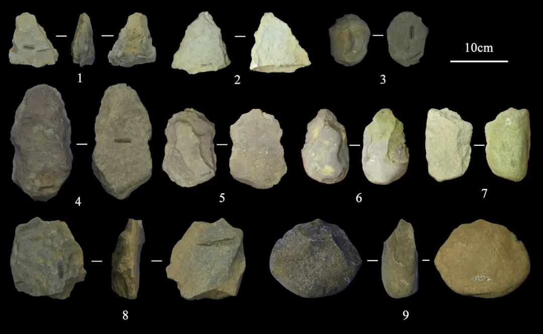 本次南或河流域的专项调查工作共采集石制品1191件。大部分采集石制品分布于南或河两岸河曲弯道沉积区的I级和II级阶地,也有部分地点发现于更高阶地。各地点的石制品原料多样,有砂岩、凝灰岩、泥岩、灰岩、砾岩、沉积岩、片麻岩、石英岩、石英等,其中又以砂岩、灰岩为主。